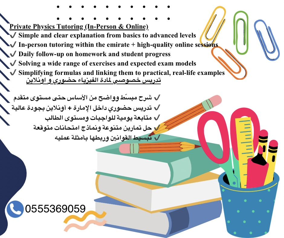 تدريس خصوصي لمادة الفيزياء لجميع المناهج وجميع الصفوف