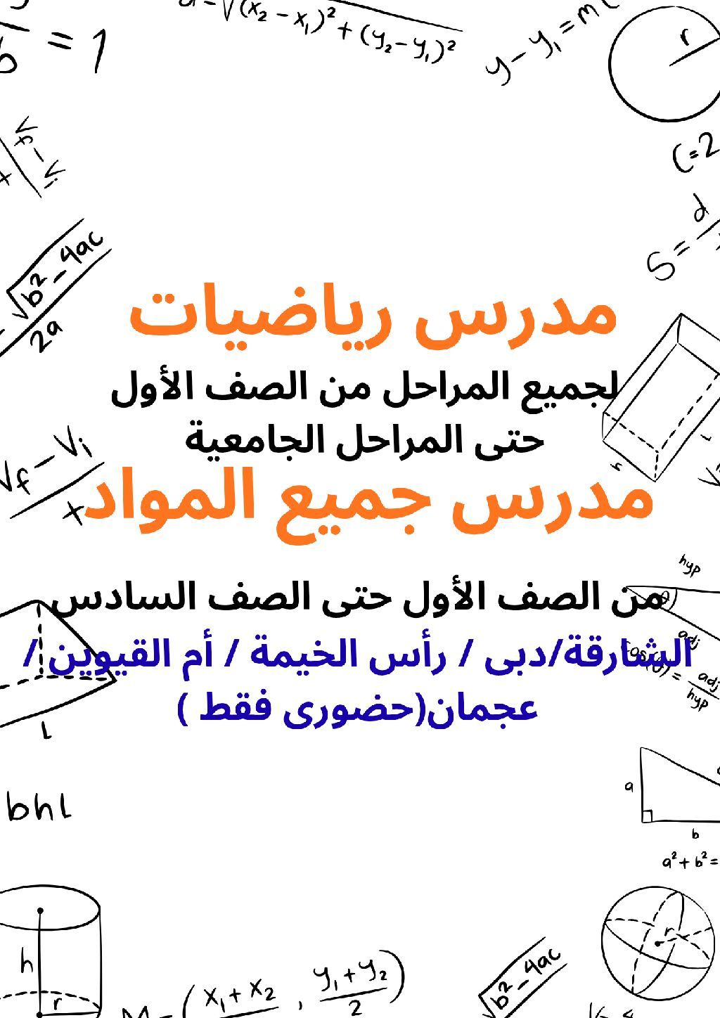 مدرس رياضيات لجميع المراحل خبرة داخل الدولة حاصل على بكالوريوس علوم وتربية تخصص الرياضيات جامعة المنصوره
