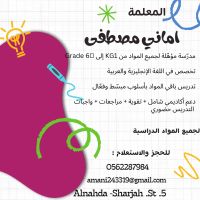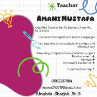 Qualified Teacher for All Subjects from KG1 to Grade 6 Specialized in English and Arabic Languages Also teaching other subjects in a simple and effective way Providing comprehensive academic support Reinforcement Reviews Homework assistance