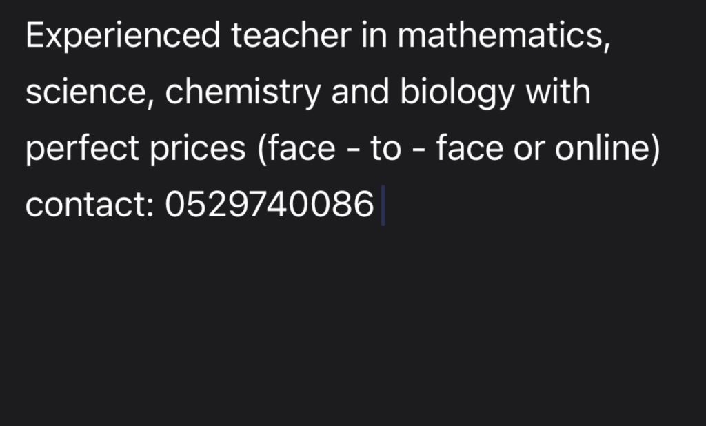 Experienced teacher in mathematics, science, chemistry and biology with perfect prices (face - to - face or online) contact