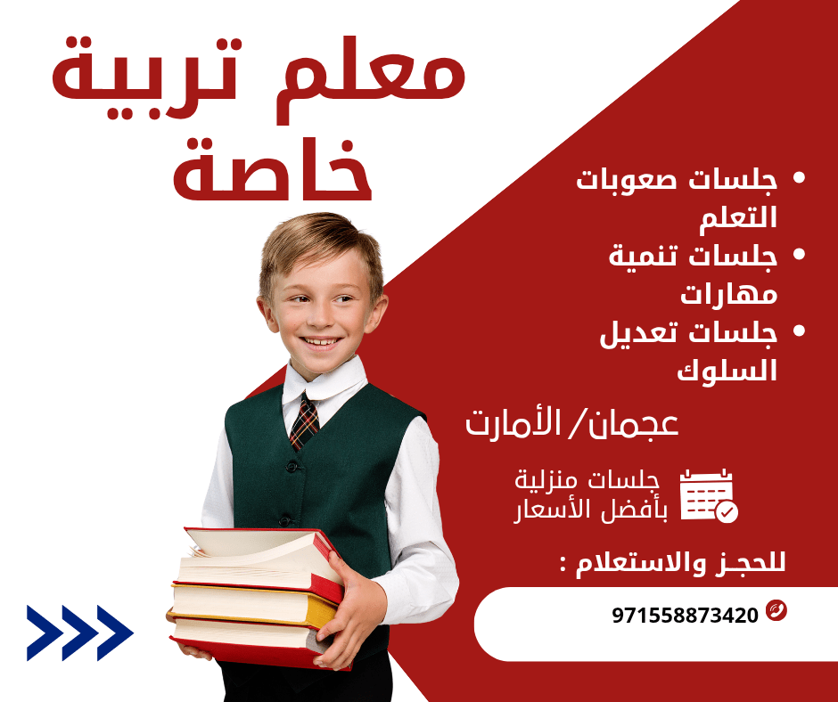 أنا معلم تربية خاصه مقيم في عجمان يتعامل مع جميع حالات ذوي الهمم وخصوصا صعوبات التعلم الأكاديمي والنمائي جميع الأعمار وتأهيل الاطفال لدخول المدراس في قسم الدمج وجلسات تنمية مهارات وتعديل سلوك متاح في عجمان أو الشارقة أو أم القيوين بأفضل الأسعار في المنزل وشكرا رقم التواصل