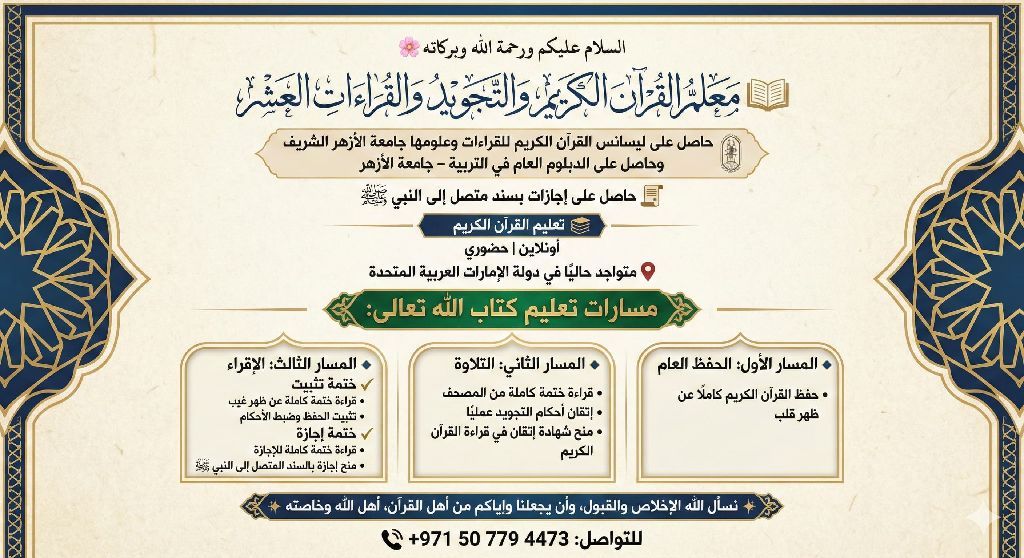 من يريد أن يقرأ ختمة باحدى الروايات أو بحفظ كتاب الله تعالى باليتواصل معي
