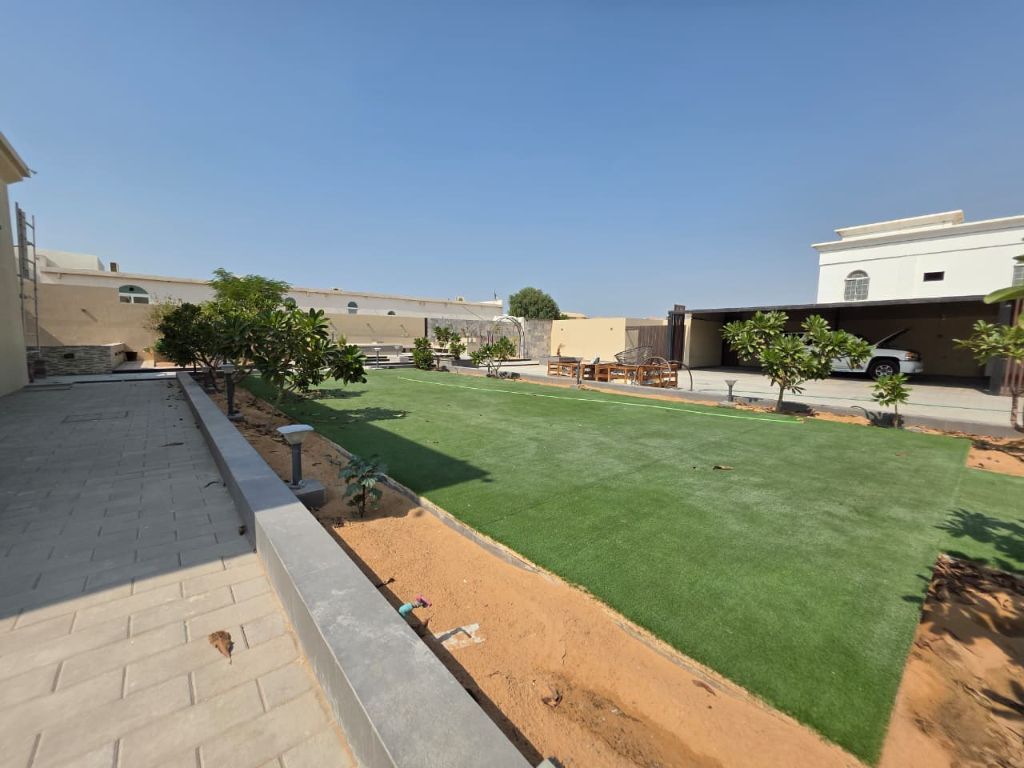 Noor Al Tareeq real estate proudly presents a luxurious villa for sale in Al Nouf 1, Sharjah available for GCC nationals A stunning single - story villa built on a spacious 30000 SqFt. plot, featuring modern architecture and high - end finishes. It includes 7 bedrooms, 2 fully equipped kitchens, and an elegant outdoor seating area with a dedicated firewood space. The Villa is equipped with A hidden