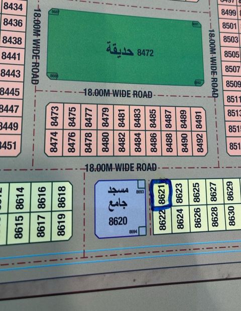 للبيع أرض في مزيرعة B مساحة الأرض 3013 قدم موقع مميز أمام الحديقة مباشرة وبالقرب من المسجد السعر النهائي 625 ألف درهم