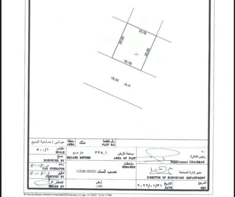 Residential land - Al - Houshi (new offering) approximately 3607 feet A unique opportunity to own residential land in Al Houshi area - New Offer, in a quiet location and suitable for the construction of a villa or private residence. Area about 3607 feet) Required 800000 dirhams