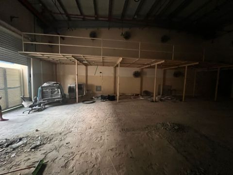 A warehouse is available for rent in Industrial Area 18, Sharjah, located directly on a main road, offering easy access for trucks and commercial vehicles. The total area is 2500 square feet, including a mezzanine level, providing flexible usage for storage, operations, or administrative purposes. The warehouse features a practical layout that allows efficient space organization to suit various Industrial