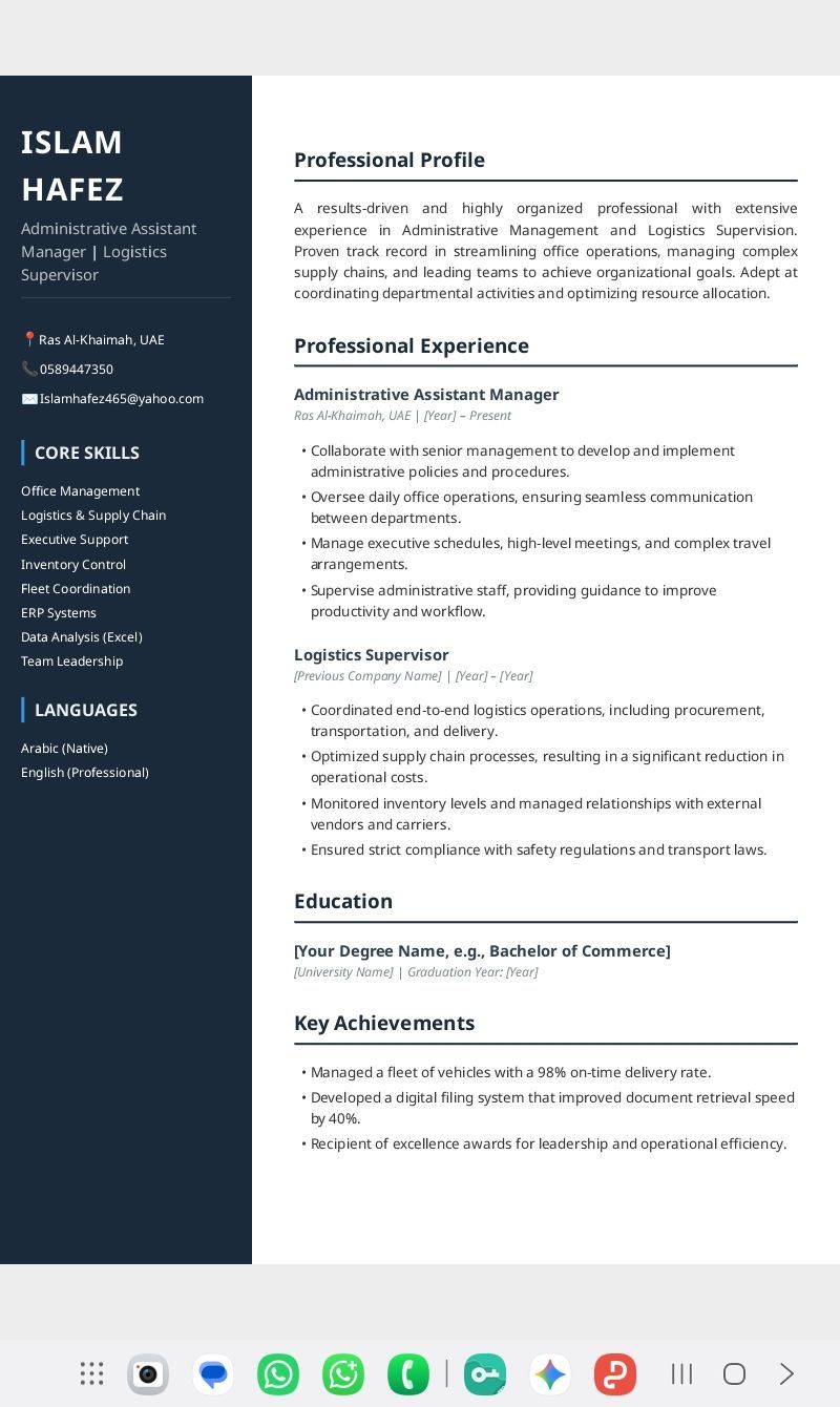 I have experience 22 years administrative assistant manager and purchasing supervisor and logistics supervisor