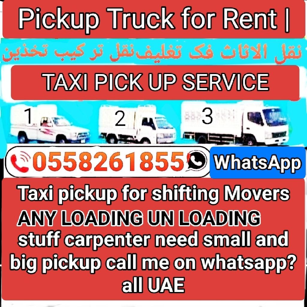 Pickup Truck for rent Taxi PICK UP Service Taxi pickup for shifting Movers Any LOADING Un LOADING stuff carpenter need small and big pickup call me on WhatsApp all UAE