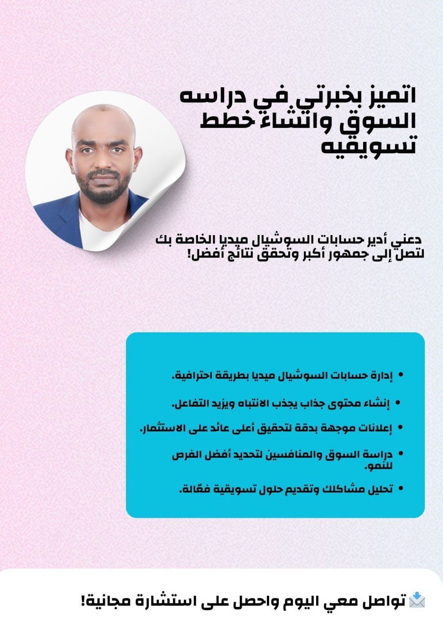 حول استراتيجيات التسويق الى نتائج ملموسة. بخبرتي المتخصصة، اضمن لك تحليل دقيق للسوق يكشف الفرص الذهبية - استراتيجيات مخصصة تتفوق على منافسيك محتوى يجذب العملاء ويحولهم الى مبيعات عائد استثمار مضمون يتجاوز توقعاتك لن أقدم وعودا فقط بالنتائج تتحدث عن نفسها. استثمر في خبرتي اليوم، واشهد تحول عملك غدا