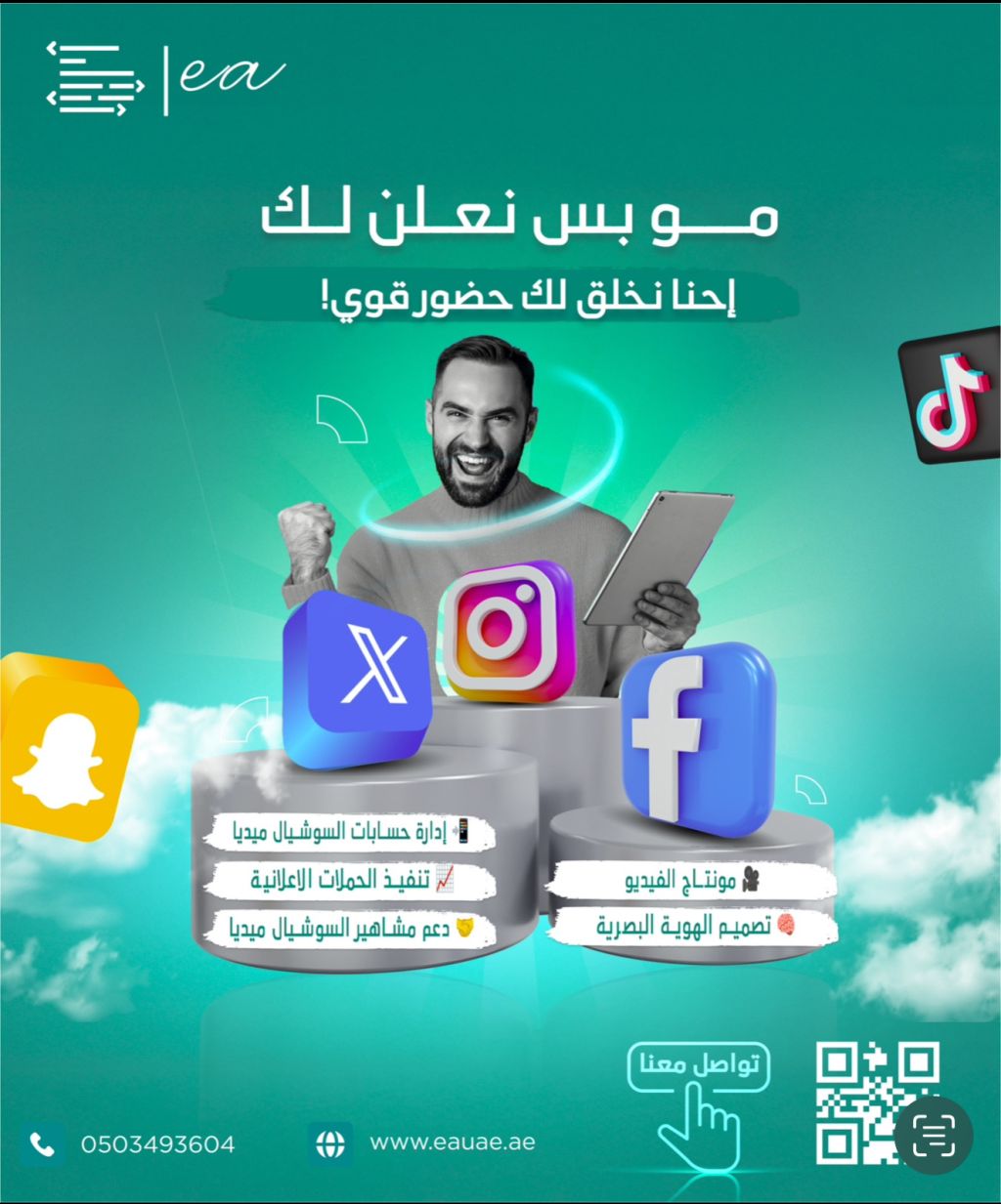 نوفر خدمات إدارة كافة حساباتك السوشيال ميديا باحترافية وادارة الحملات الممولة وتوجيه المنشورات للجمهور المناسب وتصميم المنشورات والحالات وتسجيل ومونتاج فيديوهات احترافية مع موديل وترويج الصفحات بمساعدة المشاهير عند الطلب حدد الخدمات المرغوبة واحصل على أعلى جودة في الخدمات