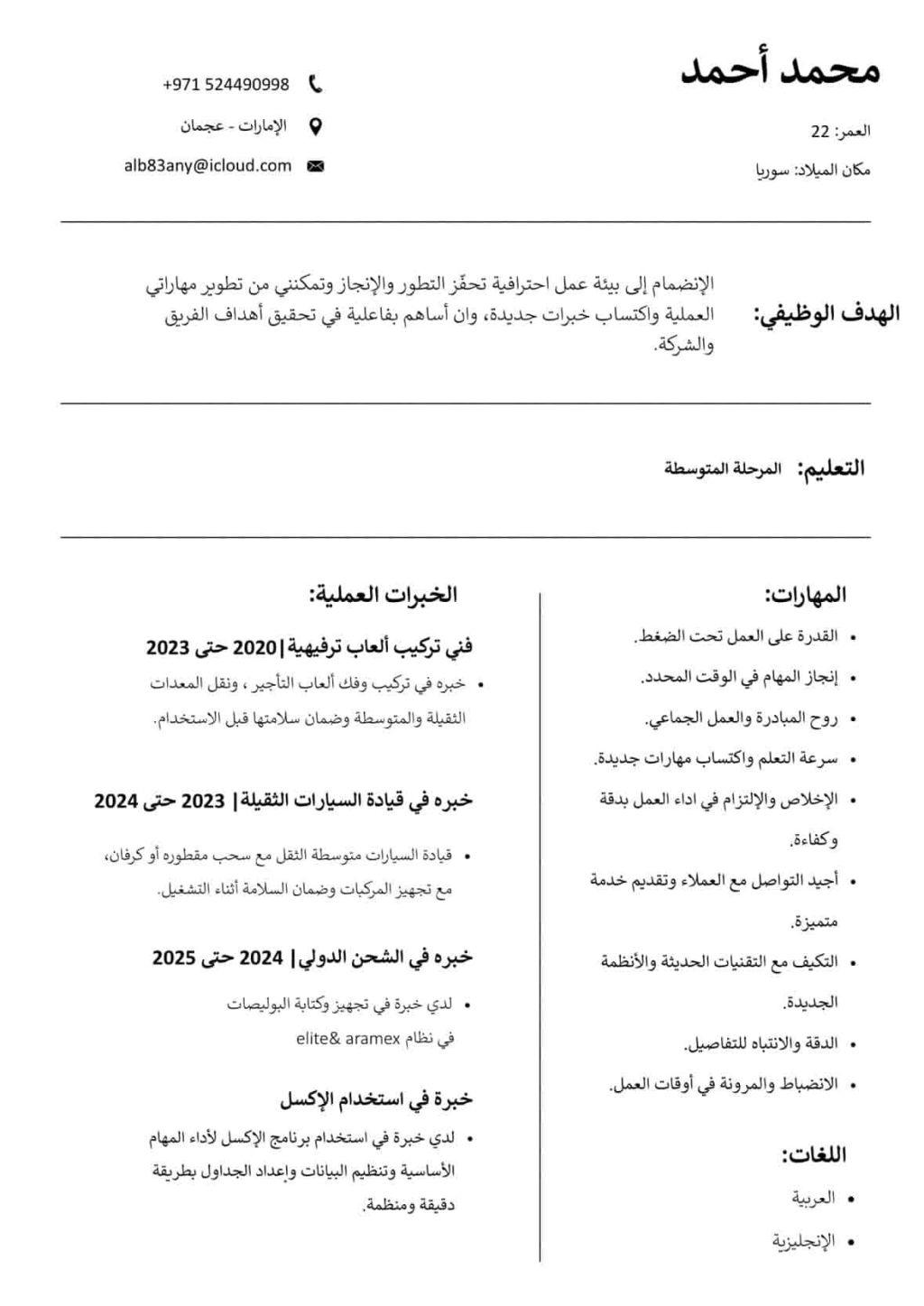 ابحث عن عمل في الامارات وهاذي سيرتي الذاتية