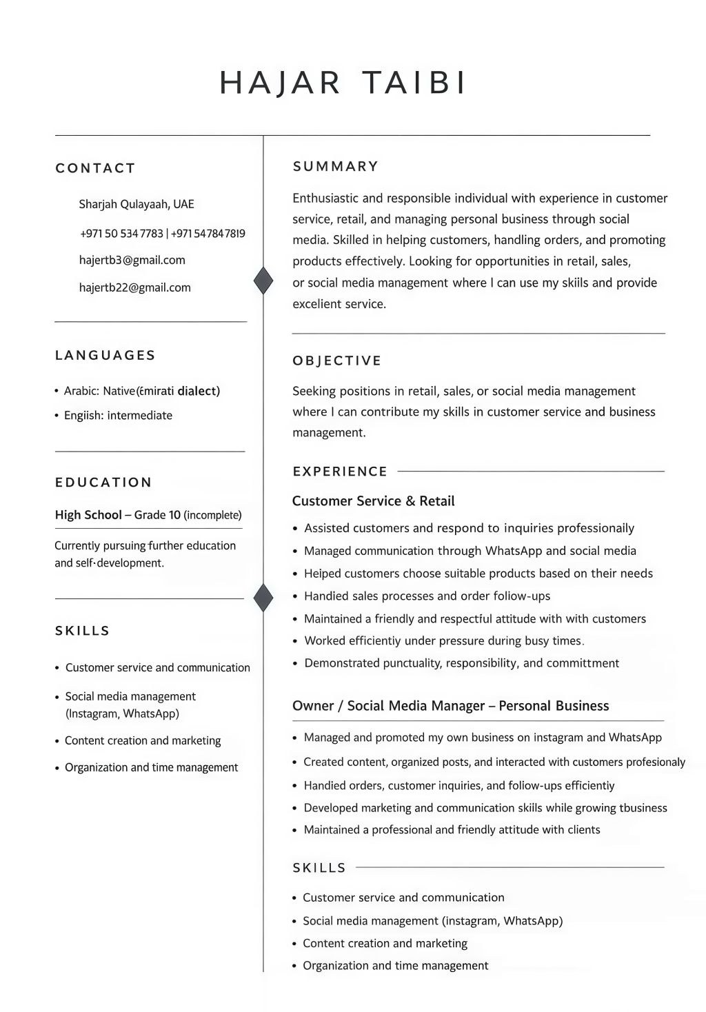 مساعدة العملاء باختيار المنتجات المناسبة متابعة الطلبات والتواصل عبر WhatsApp وInstagram إدارة محتوى وترويج المنتجات عبر وسائل التواصل الاجتماعي - محلات بيع بالتجزئة - مبيعات وتجربة العملاء - إدارة حسابات السوشيال ميديا للتواصل