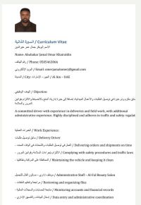 أنا أبو بكر من السودان. ابحث عن فرصة عمل مناسبة في مجال إدارة الأعمال أو السائق أو أي مجال اداري أو مكتبي أو مبيعات، حيث أتمتع بسرعة الفهم والقدرة على التعلم والتأقلم مع مختلف بيئات العمل. أتميز بالجدية والالتزام، وأحب العمل ضمن فريق، كما أتحمل ضغط العمل وأسعى دائما لتطوير مهاراتي وتحقيق أفضل النتائج. متوفر لدي رخصة قيادة سارية المفعول وإقامة نظامية، ومستعد للعمل فورا