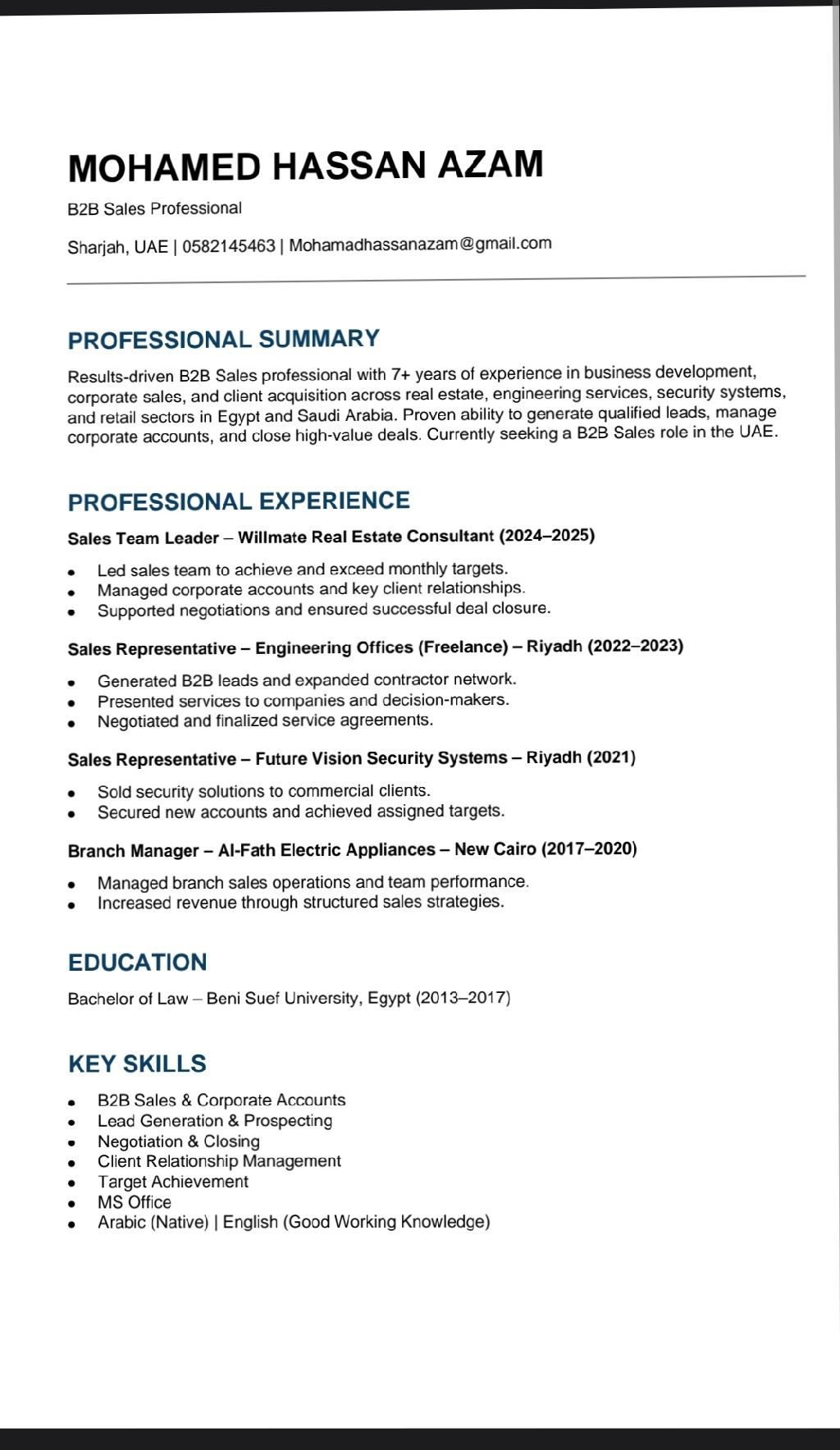 خبرة تتعدي أل 7 سنين في المبيعات الداخليه والخارجية وادارة المعارض والمحلات خبرة أربع سنين في السوق السعودي خبرة كافية أيضا في المبيعات الهاتفية للعقارات ابحث عن عمل الآن في الامارات لتوظيف هذه الخبرة والاستفادة من السوق الاماراتي