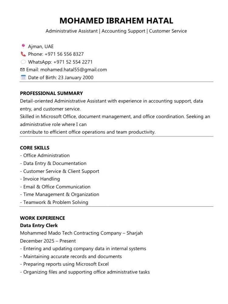 ابحث عن فرصة عمل في مجال المبيعات أو مجال اداري أو مكتبي ولدي خبرة داخل الدولة وإقامة