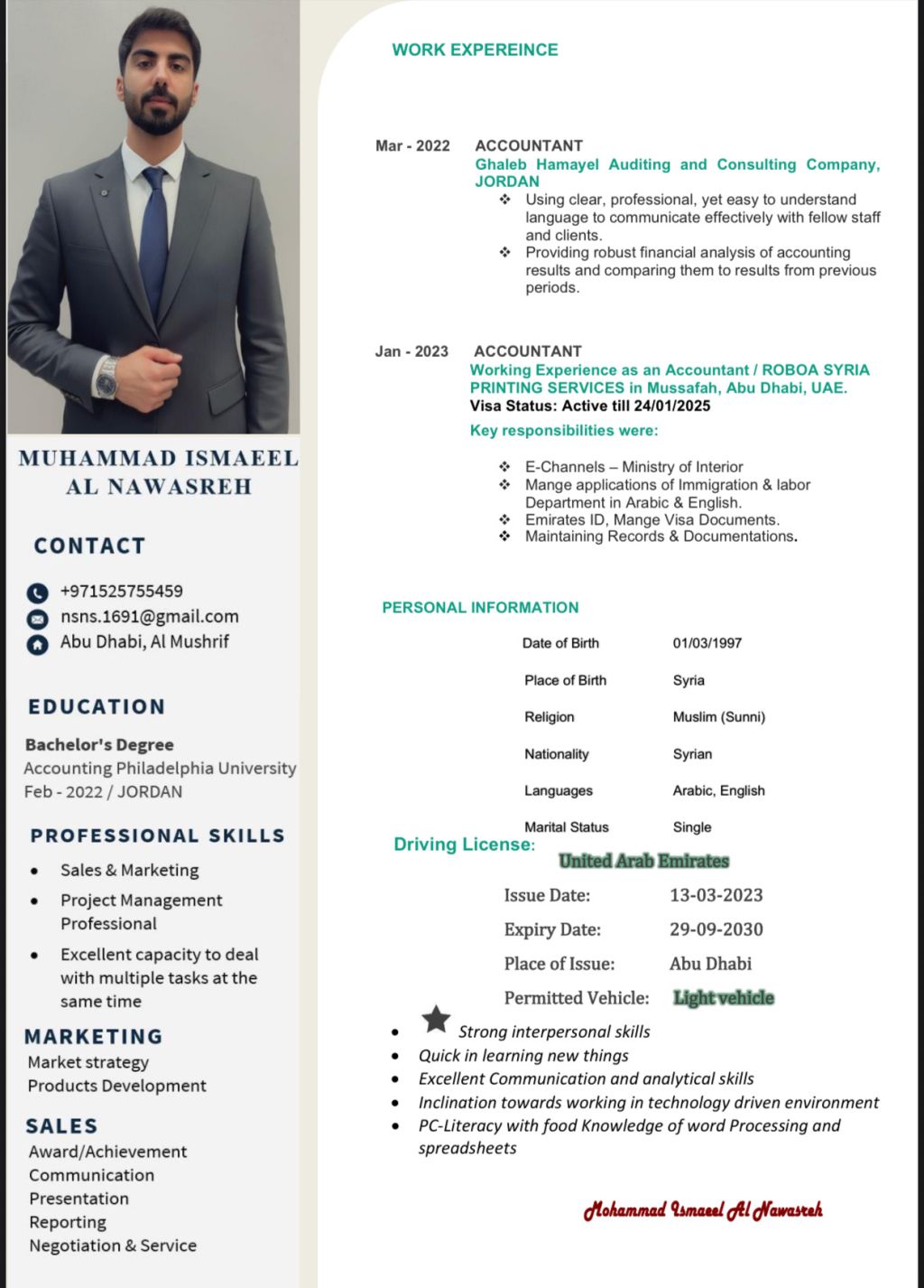ابحث عن عمل في مجال العقارات، سوري الجنسية، حديث التخرج في مجال المحاسبة، بالرغم من شهادتي الا أني أحب العمل في مجال العقارات، لدي معارف، حسن المظهر، سريع التعلم