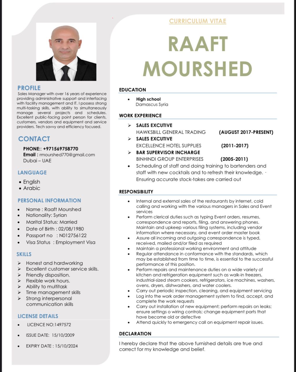 I am professional outdoor sales I have a driving license, experience in sales and I am looking for an opportunity with a growing company where I can add real value and contribute to increasing sales