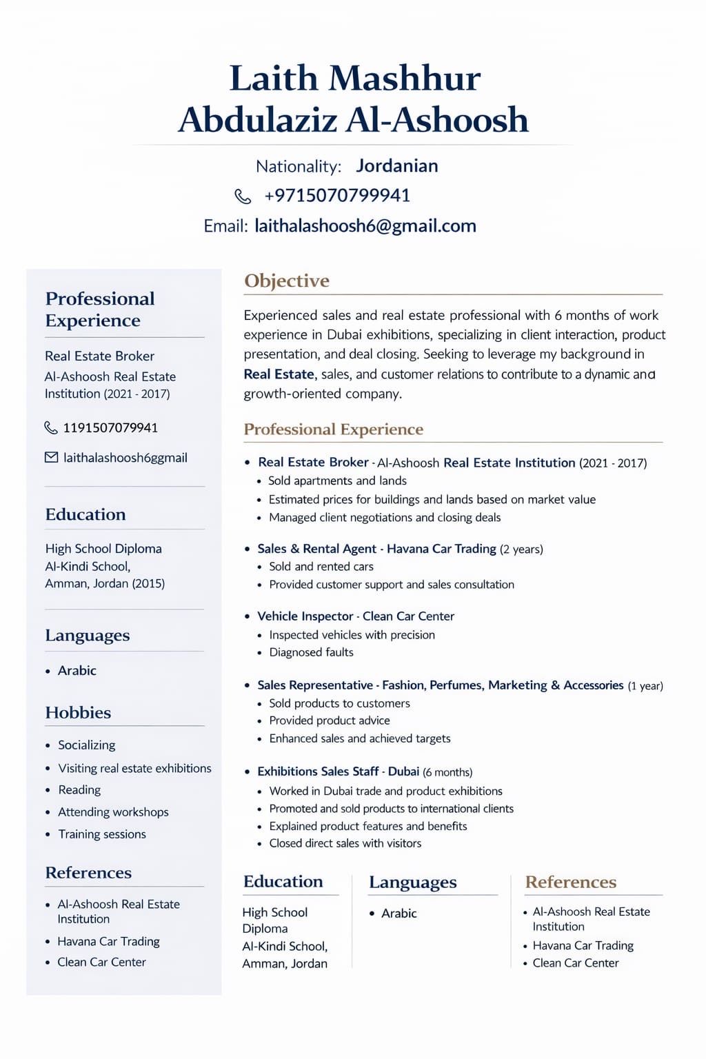 شاب أردني، يبحث عن عمل في مجال المبيعات والتسويق لديه خبرة في مجال السيارات وخدمات السيارات موجود حاليا في دبي