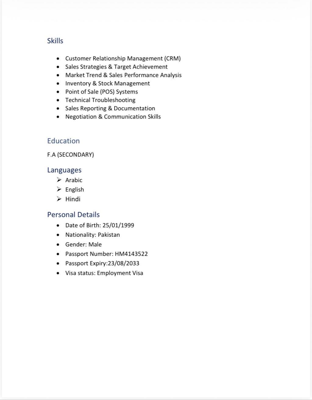 Hi my name is Muhammad Madani khan and I am from Pakistan and living in Dubai from more than 6 years and I am looking for senior salesman job in supermarkets/ hyper market