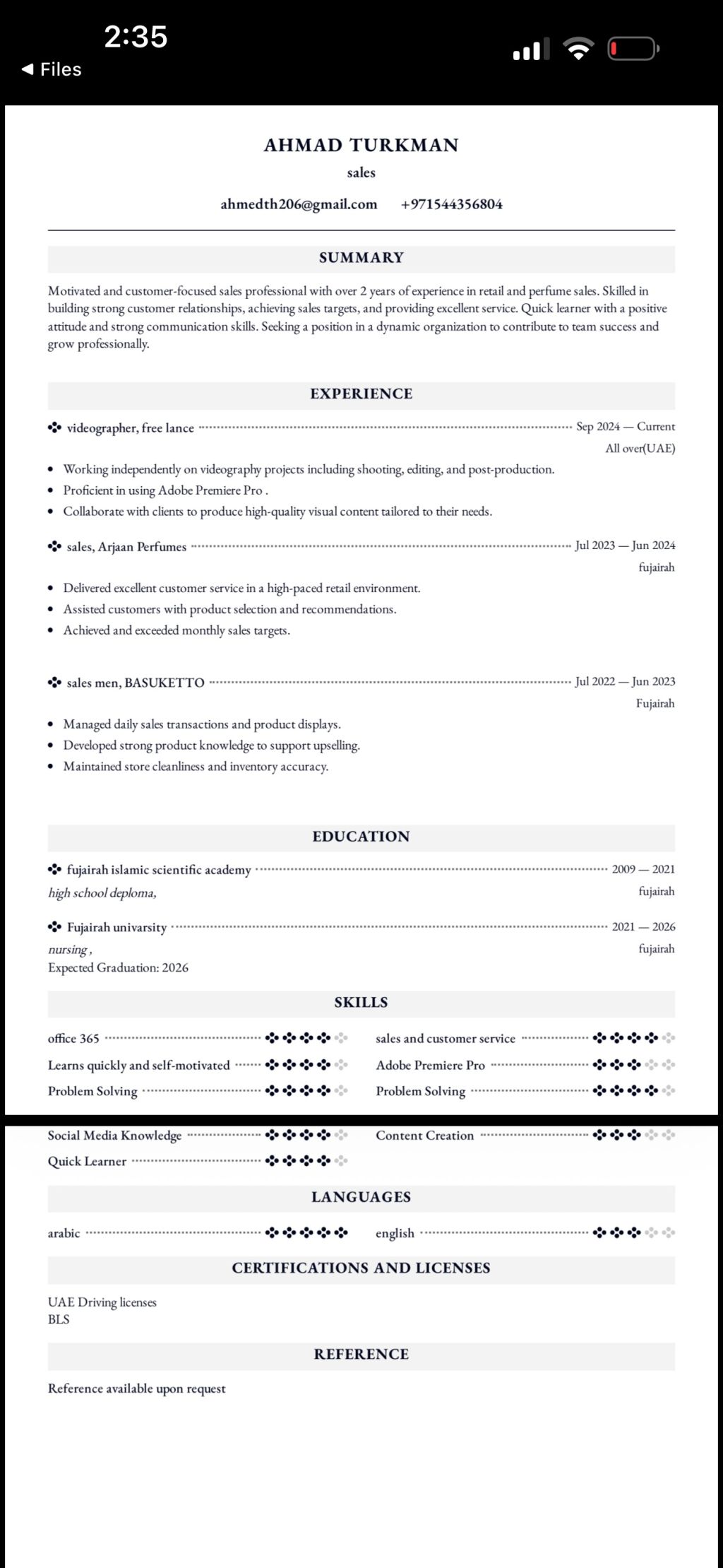 Seeking Work in Sales and Marketing in Emirates