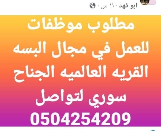 مطلوب بنات سوريات للعمل في القرية العالميه الجناح سوري بي مجال البسه للتواصل