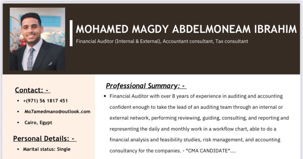 Financial Auditor with over 8 years of experience in auditing and accounting confident enough to take the lead of an auditing team through an internal or external network, performing reviewing, guiding, consulting, and reporting and representing the daily and monthly work in a workflow chart, able to do a financial analysis and feasibility studies, risk management, and accounting