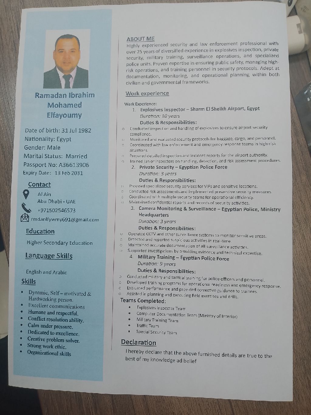 أنا مصري وكنت اعمل في الشرطة المصرية وعندي مجال كبيرة في مجال الأمن وكاميرات المراقبة