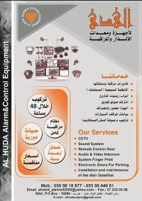 Al - Huda - Alarm and Surveillance Equipment and Devices Specialized in all security systems Installation and maintenance of surveillance cameras Our services Automatic gates. Audio and video system Intercom. Sound System speakers. Satellite dish. Gates Parking gates. CCTV Contact us