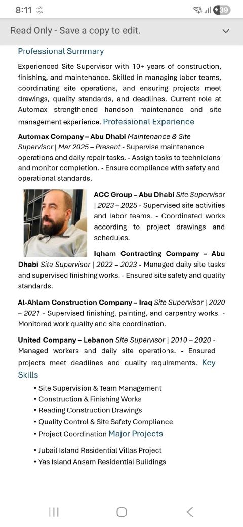 أحمد عبد الله عيد، مصري الجنسية، أبلغ من العمر 30 عاما، وأقيم حاليا في دبي. أحمل إقامة سارية في دولة الامارات العربية المتحدة ورخصة قيادة صادرة من دبي. أجيد اللغة الانجليزية، ولدي خبرة تمتد الى 10 سنوات في مجال اللوجستيات والعمليات، بما في ذلك العمل كمشرف توصيل. ابحث عن فرصة عمل في مجال الإدارة أو اللوجستيات، ومستعد للانضمام فورا