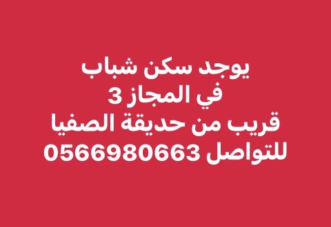 يوجد سكن شباب في المجاز 3 قريب من حديقة الصفيا سكن شباب نظافة يوميه هدوء جميع الموجودين موظفين للتواصل