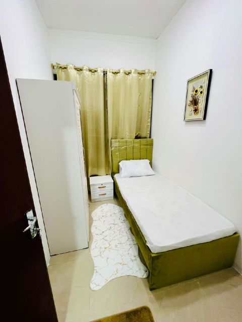 Available 2 beds foreman at AED750 per bed in a triple room with a window and a private refrigerator. Located in a men’ apartment in Al Taawun, all - inclusive