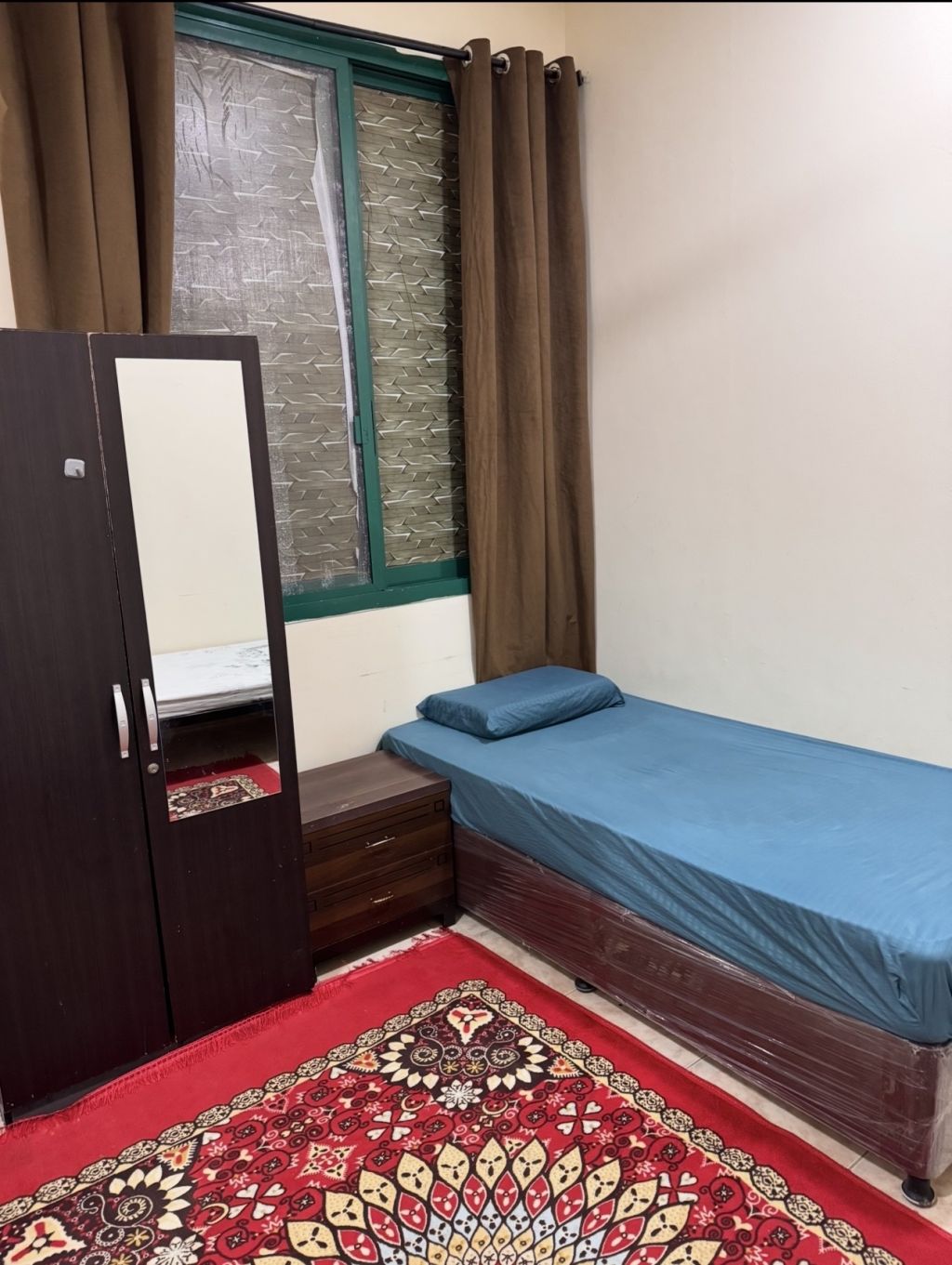 متاح غرفة كبيرة مفروشة ل 3 أفراد للإيجار الشهري شامل مطبخ متوفر جميع الأدوات والاجهزة الكهربائية وموقف مجاني بمبلغ 2200 درهم فقط بالشهر مع تأمين مسترد 500 درهم، النباعة الشارقة، بجوار دوار المطافي خلف نستو بجانب بناية ملبار للبهارات مقابل محطة الباص للتواصل