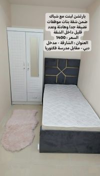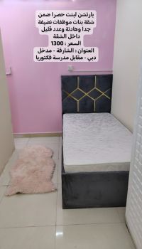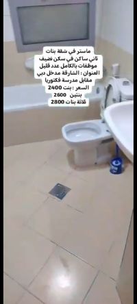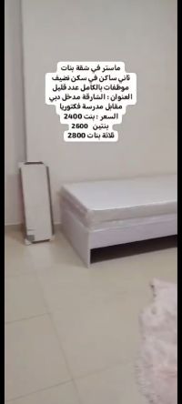 بارتشنات وغرف ماستر للبنات - الشارقة الموقع الشارقة، مدخل دبي، مقابل مدرسة فيكتوريا المواصفات شقة بنات نظيفة وهادئة - عدد قليل في الشقة - للبنات فقط السعر 1300 درهم + بارتشن بنات 1400 درهم + غرفة ماستر بنات بنت واحدة 2400 بنتين 2600 ثلاثة بنات 2800