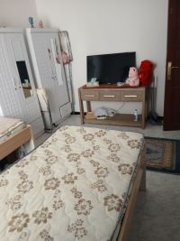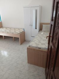 سرير غرفة ثلاثية للبنات في المجاز 3 قرب القصباء ومطعم الطربوش الأحمر في بناية هادئة قريبة من جميع الخدمات مع حمامين ومطبخ مشترك على 850 درهم