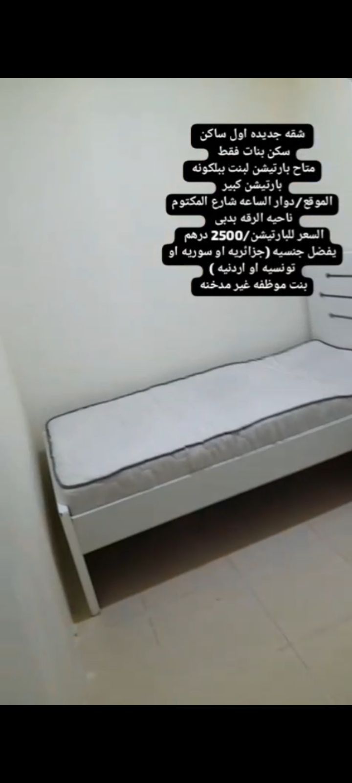 شقة جديدة أول ساكن سكن بنات موظفات غير مدخنات بارتشن كبير مع بلكونه ومساحة ممتازة في شارع المكتوم بجوار دوار الساعة وقريب من محطة مترو الرقة