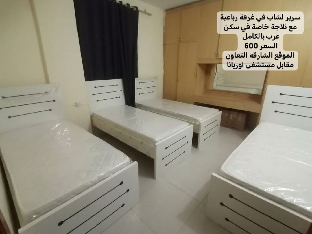 متاح سراير سكن شباب في الشارقة منطقة التعاون مقابل مستشفى اوريانا 600 شامل الفواتير