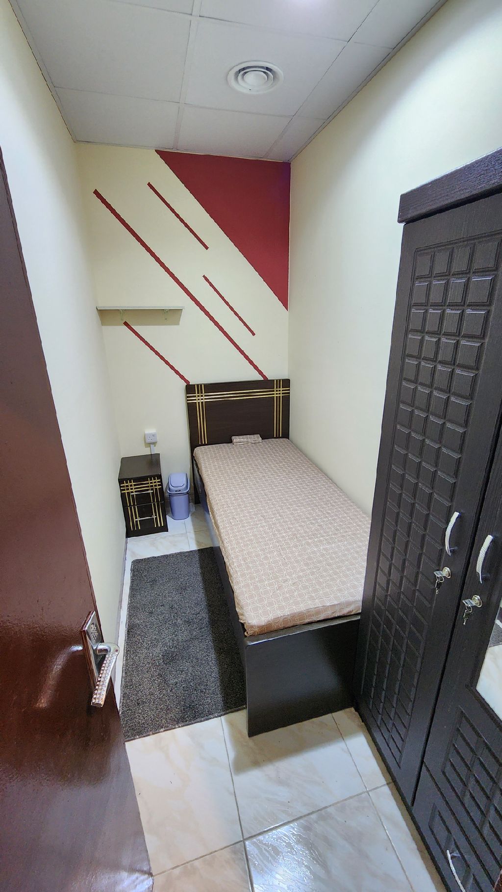 سكن شباب أول ساكن أبو شغارة فرش جديد بارتشنات غرف منفصلة قريب داي تود أي ونستو وباص دبي والصناعية 4، نظافة دورية جلسة للشباب و3 حمامات وبلكونه