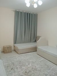 Beds available for male employees in a quadruple room for AED700 in Al Majaz 3, next to Anbar and Nesto. The apartment is clean, organized, quiet, and located in a lively area