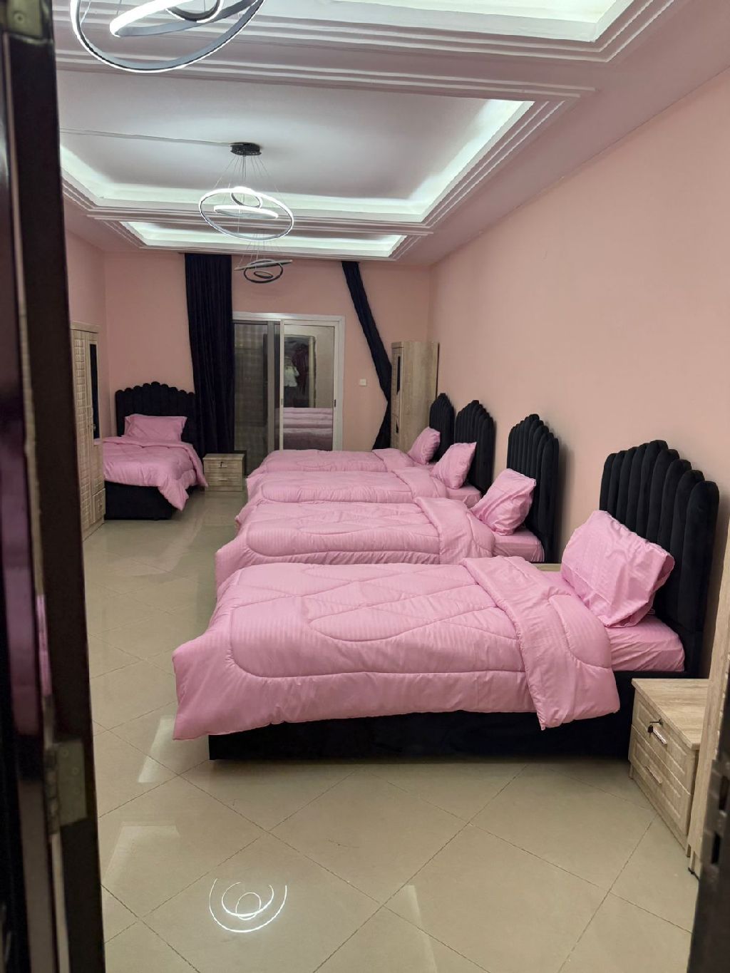 First - occupancy girls’ apartment in Al Taawun, in the Oriana Hospital building. A master room is available for one or two girls, along with spacious partitions and beds in a large room. Quiet accommodation for working women, with all services available