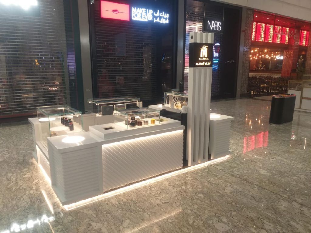 There is a perfume kiosk for sale, ready for installation, measuring 3*2 meters p 10000 drh