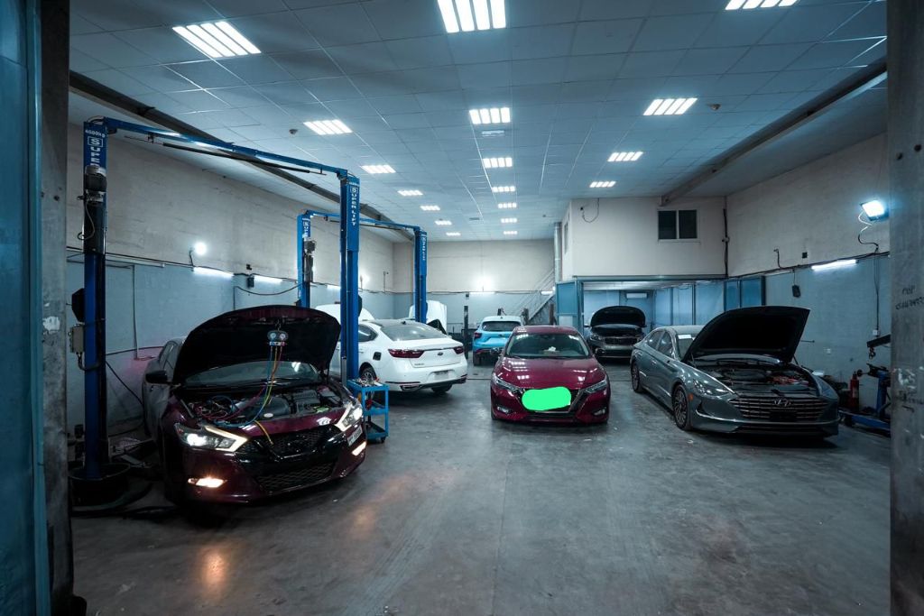 For annual rent in Sharjah, a garage with an area of 200 SQM in Industrial Area 4. It includes an air - conditioned office room, the entire garage is air - conditioned, a painting room, a bathroom, 4 ceiling height. Equipped with 2 jacks, an air compressor, mechanical tools, bodywork tools, painting tools, full cameras in the place, and WiFi - The office has been fully renovated and includes