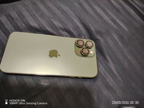معي آيفون 13 برو ماكس حالة جديدة مش مغير أي حاجة بطارية 83 معه الكرتونه ومعه الكبل وكفرات كثيرة مساحة 256 اللون الجولد