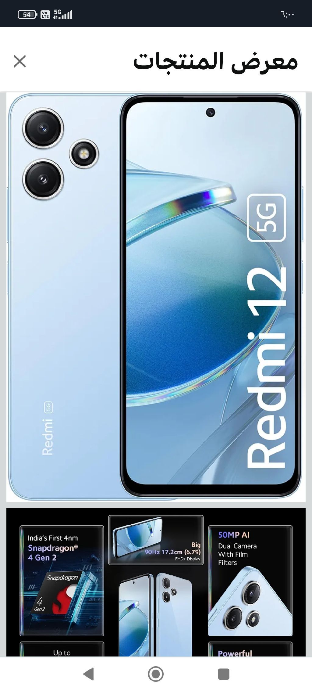 هاتف ريد مي نوت 12. 5g كسر زيرو بالكرتونه 8 + 8 رام 256 ذاكرة الهاتف كسر زيرو للبيع داخل الشارقة
