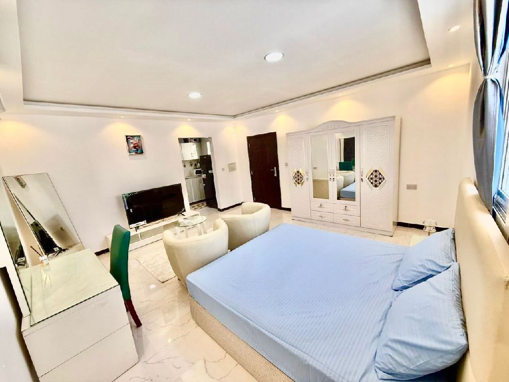 ملحق مدخل خاص مفروش للإيجار أول ساكن بمدينة الشامخة مقابل مكاني مول موقع متميز قريب من الخدمات حمام ومطبخ نظامي تشطيب سوبر ديلوكس تكييف سبليت العقد شامل المياه والكهرباء والصيانة السعر 3800 شهري
