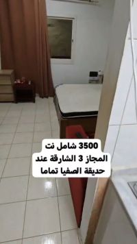 استوديو 3500 مع نت فقط، جاهز للتسليم فورا الشارقة المجاز 3 عند حديقة الصفية تماما