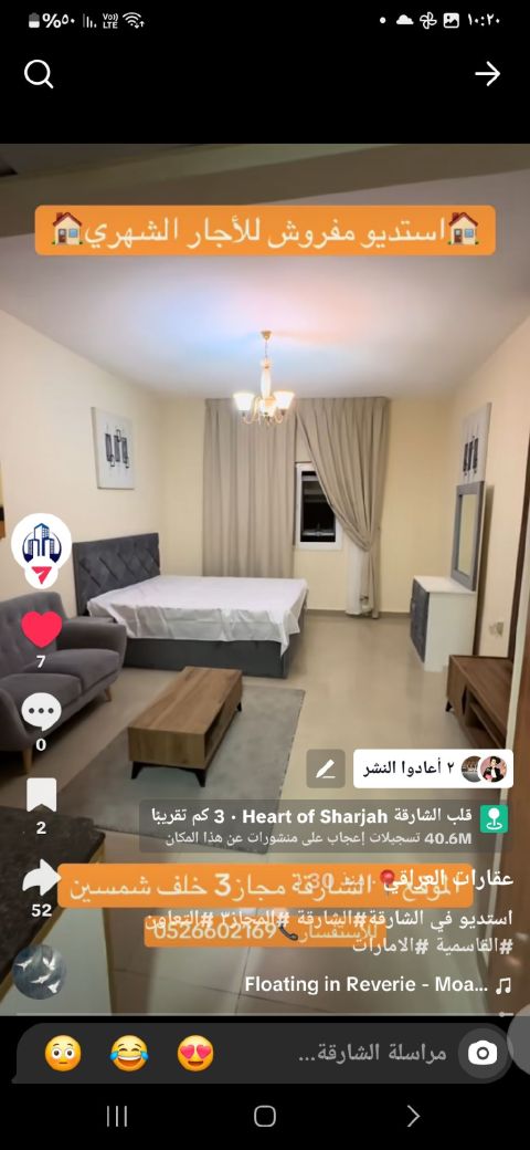 متاح من 10 سكن الشارقة متاح من يوم 10 الشهر استوديو مفروش إيجار شهري مساحة كبيرة إيجار 3300 شامل جميع الفواتير تأمين 600 مسترد إن شاء الله متاح من تاريخ 10 / 1/ 2026 للحجز قريب محطة الباص الشارقة القاسمية الند