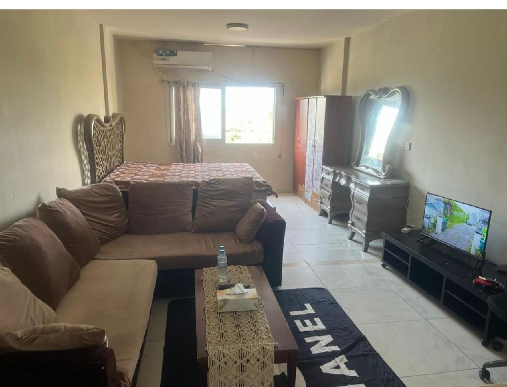 Furnished studio for rent in Al Majaz 2, opposite Al Majaz Park. rent is AED3200 all - inclusive or AED2700 excluding utilities. Prime location near services and transport. Security deposit AED700. Ready to move in. Contact via WhatsApp or call