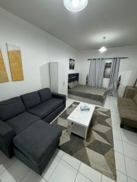 Furnished studio for monthly rent in Al Taawun area at AED3500, including internet only, excluding electricity and water bills. Ideally located near shops and services, the studio offers a comfortable design and modern furniture, providing a practical and affordable living space for individuals or couples in Sharjah