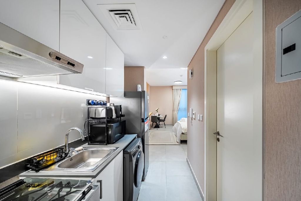 Available in Sharjah Aljada - Furnished studio, one bathroom Parking available. monthly rent AED5500. Annual contract - 12 cheques. rent includes everything. Security deposit AED7000 (cheque)