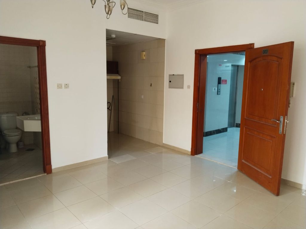 The most luxurious studio in Al Qulaya'ah, Sharjah for annual rent, very spacious with separate kitchen, central AC, superlux finishing, prime location near the sea and services, for rent AED22000 in 6 installments, a rare opportunity for comfortable upscale living for individuals and families